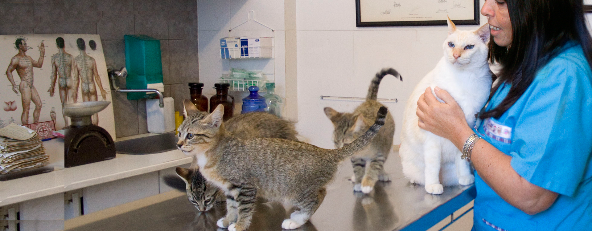 Trabajo en equipo con veterinarios y especialistas de diferentes áreas de la medicina veterinaria tradicional (clínica) para tratar de forma integral a los animales.